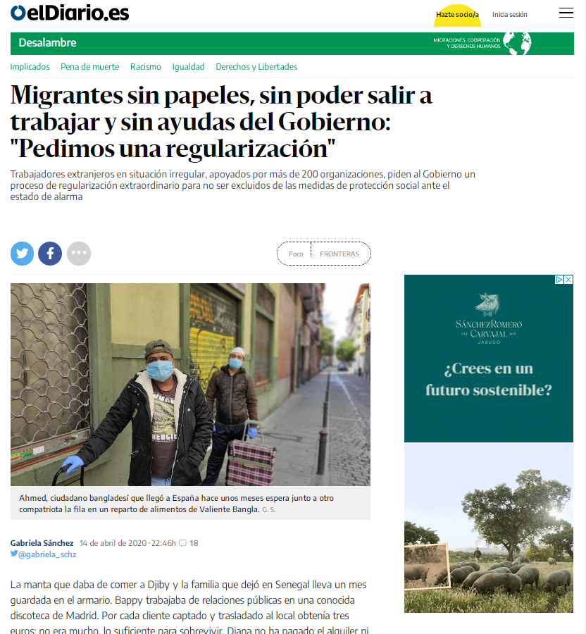 19/04/2020. La Razón Desde el inicio de la noticia encontramos ejemplos de malas prácticas. Si empezamos por el titular, observamos cómo el uso de la palabra “ilegal” ya posiciona la información hacia un discurso de odio que criminaliza una situación no elegida por nadie, un planteamiento poco constructivo. Una de las labores del periodista debe [...]