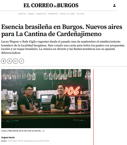 Esencia brasileña en Burgos. Nuevos aires para La Cantina de Cardeñajimeno
